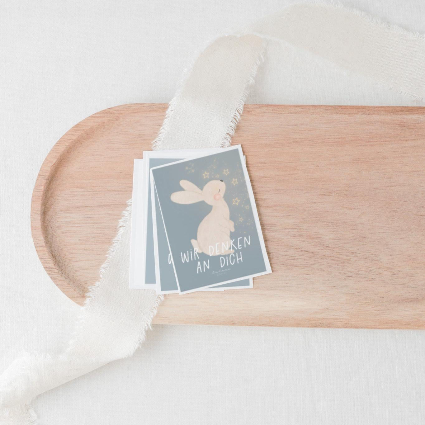 Aufkleber für Grabkerze Hase mit Spruch "Wir denken an dich"