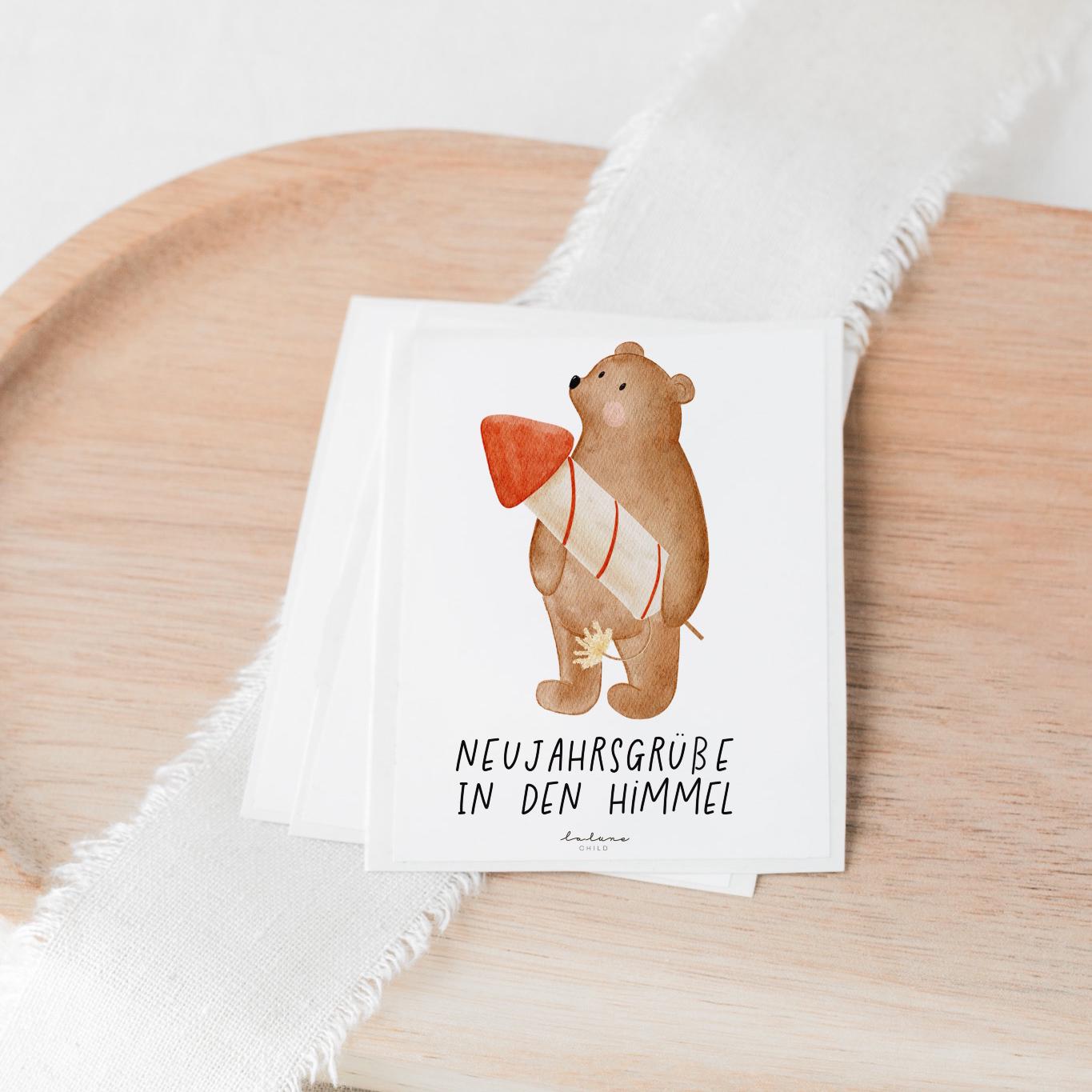 Aufkleber Grabkerze Bär mit Rakete – Neujahrsgrüße in den Himmel