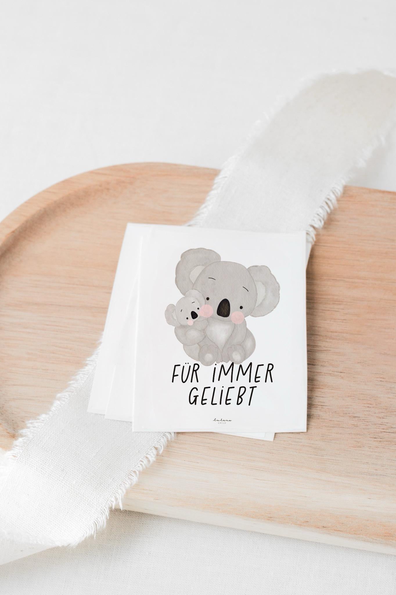 Ein liebevoll gestalteter Grabsticker mit einer Koala Familie mit berührenden Worte „Für immer geliebt" stehen für Trost, Hoffnung und eine unvergessene Erinnerung.