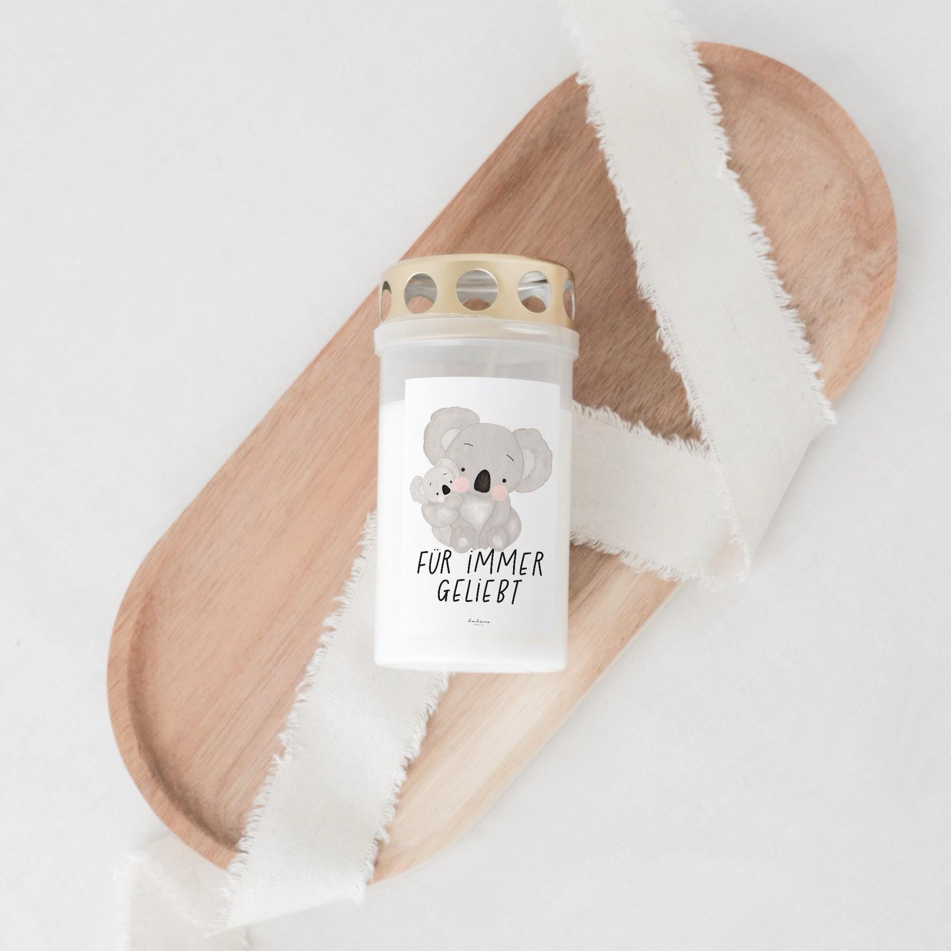 Ein Licht der Erinnerung für einen besonderen Stern. Diese liebevoll gestaltete Grabkerze zeigt einen sanften Koala, begleitet von den Worten „Leuchte hell, kleiner Stern". Sie spendet Trost und symbolisiert die Liebe und Verbundenheit, die über die Zeit hinaus bestehen bleibt. 🐨
