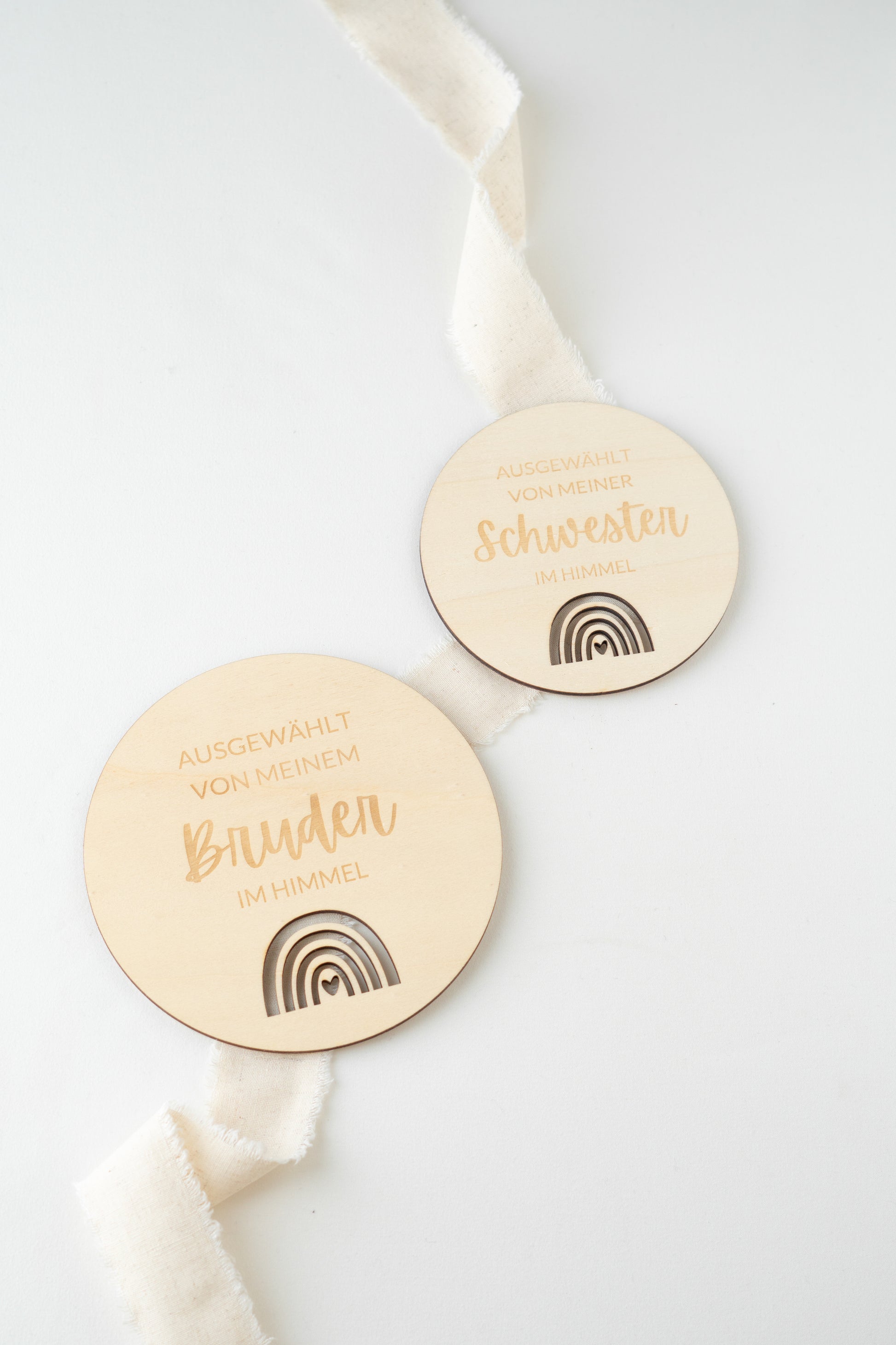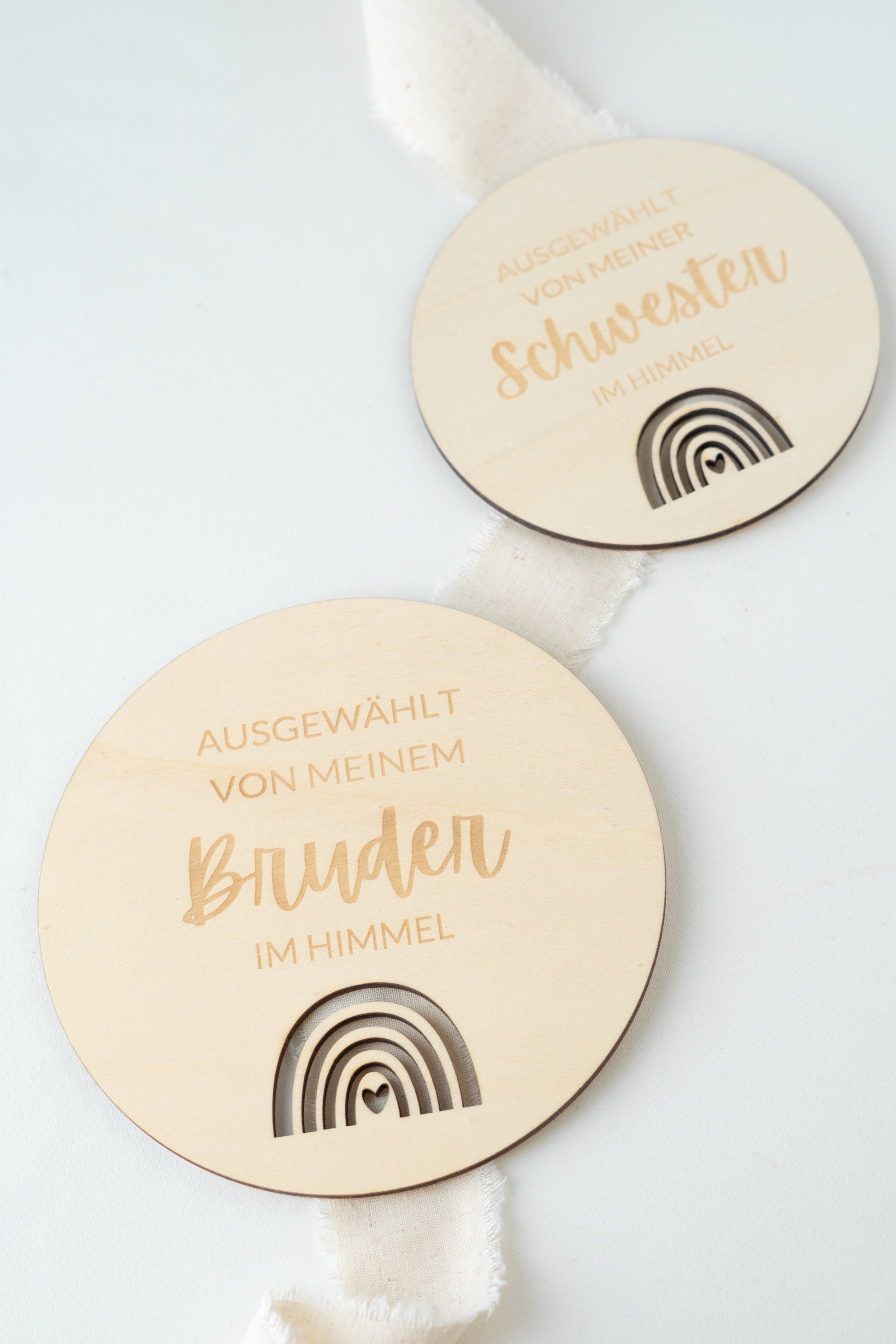 Dieses einzigartige Schild ist mehr als nur eine Dekoration - es ist eine zarte Hommage an das verborgene Band zwischen Geschwistern, die über den Himmel hinausreichen.