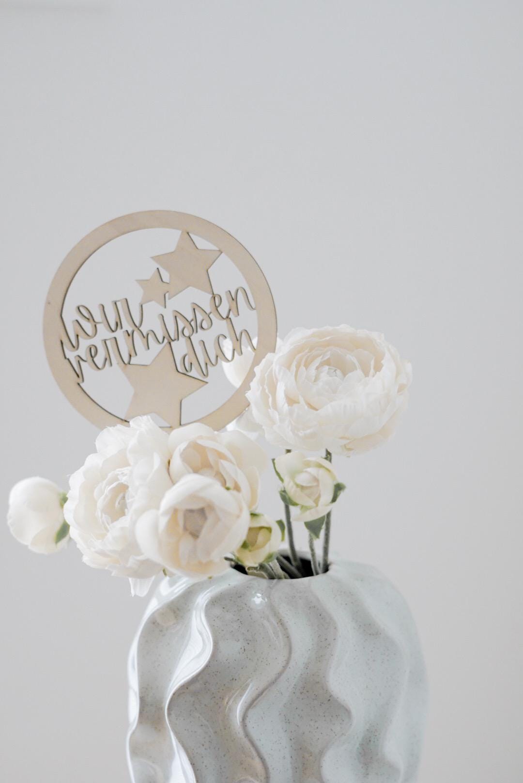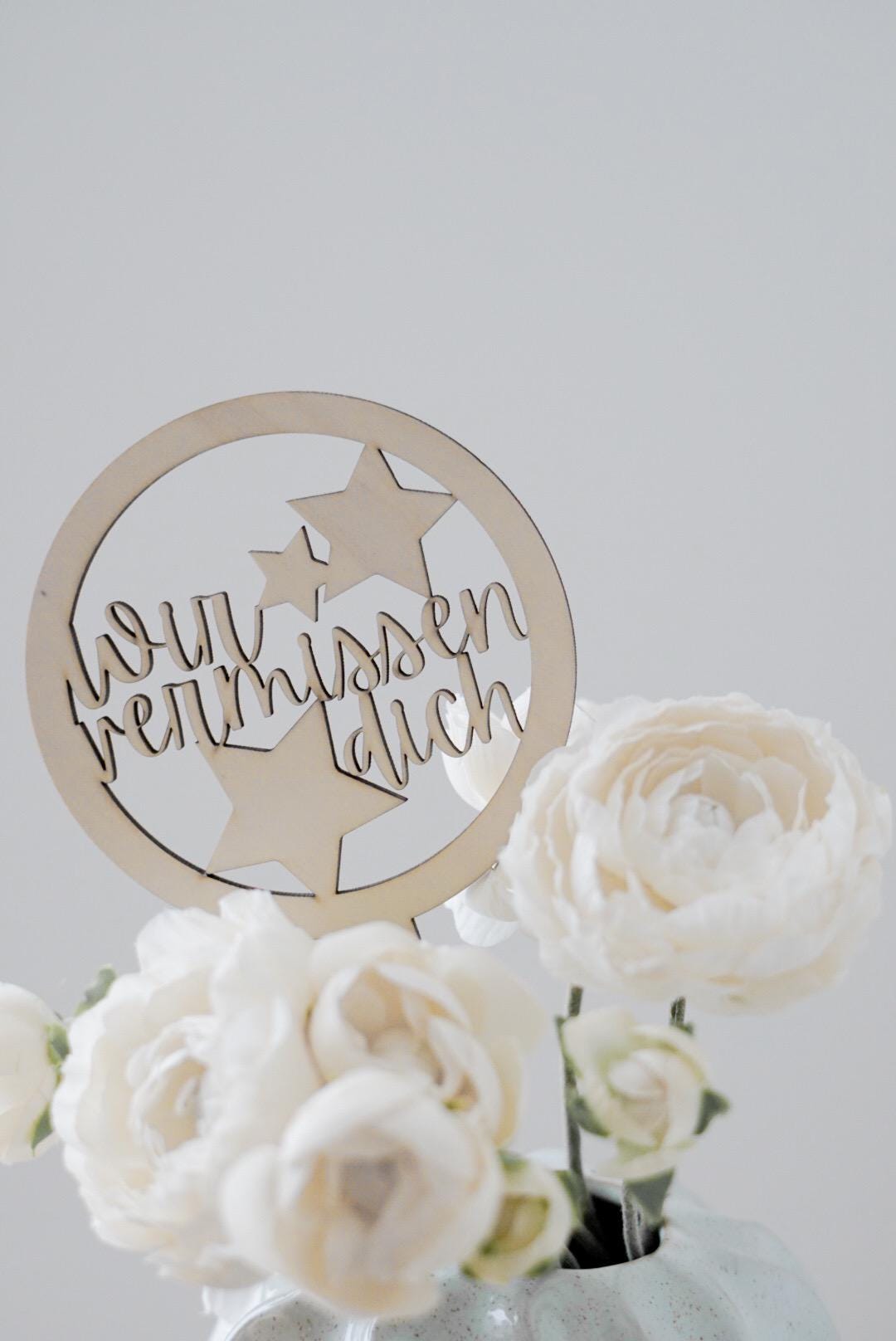 Personalisierter Grabstecker – Stern mit Spruch „Wir vermissen dich“ | Gedenkstecker aus Holz (26 x 12 cm)
