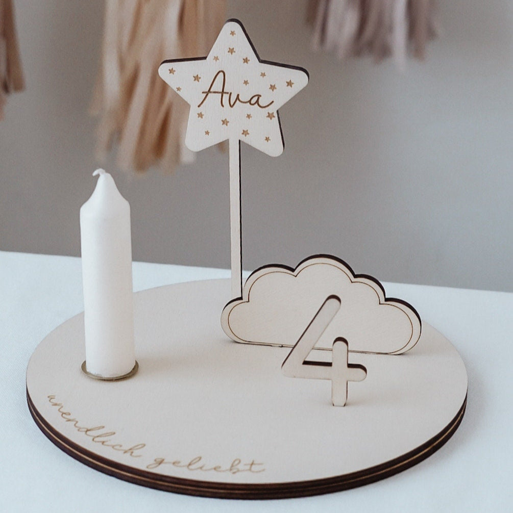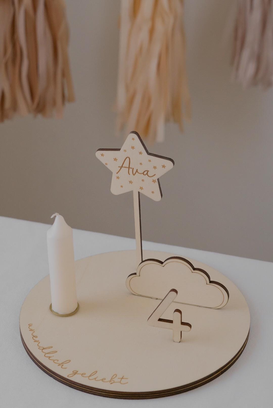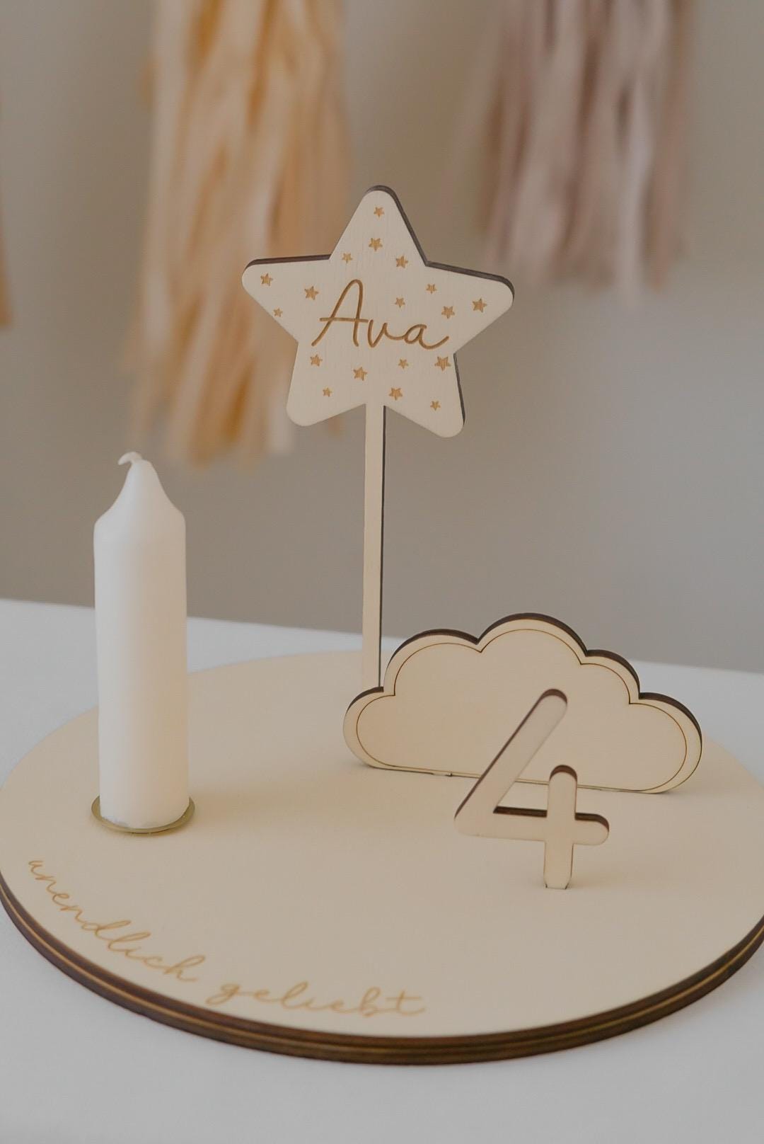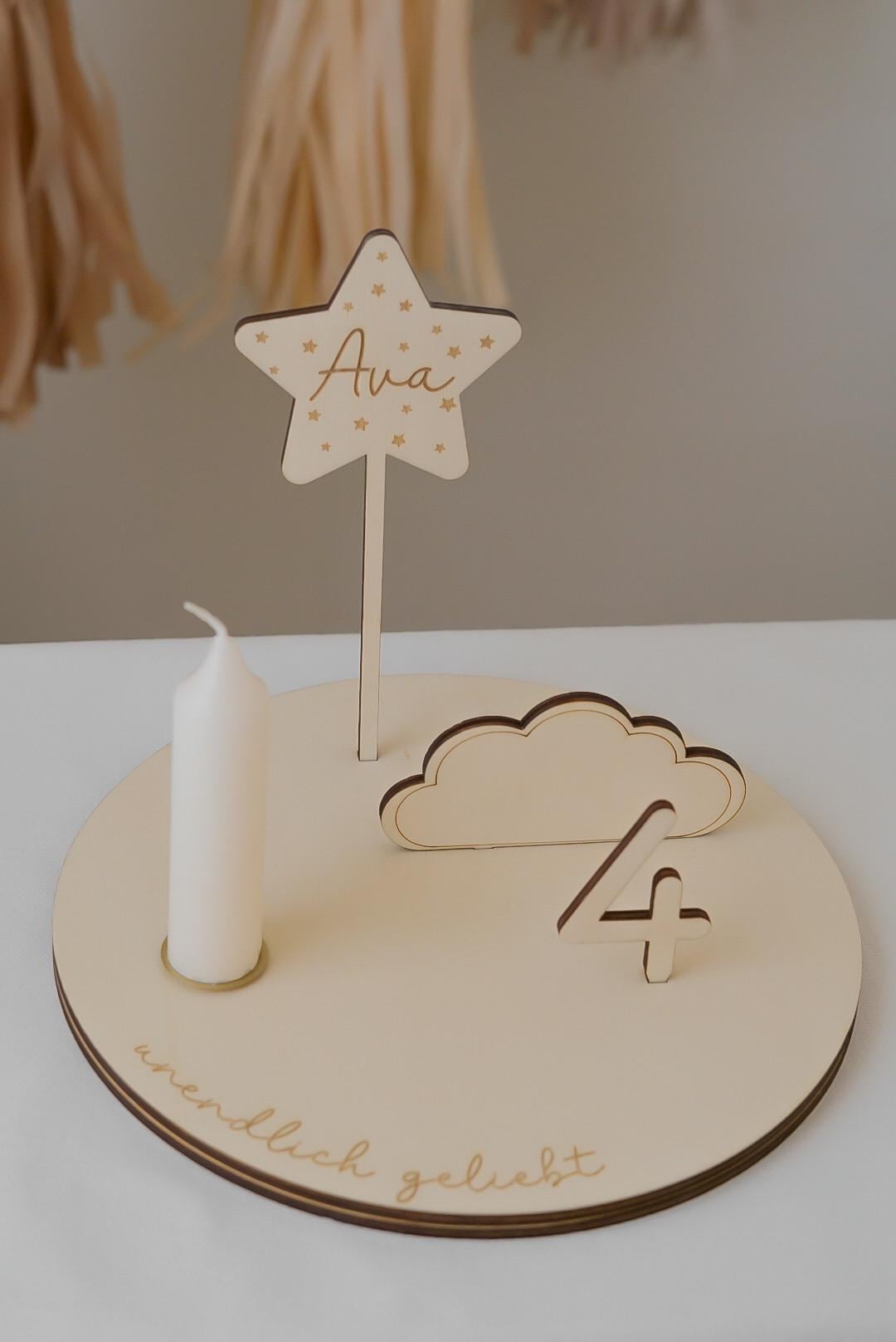 Personalisierter Holz Geburtstagsteller mit Sternenstecker
