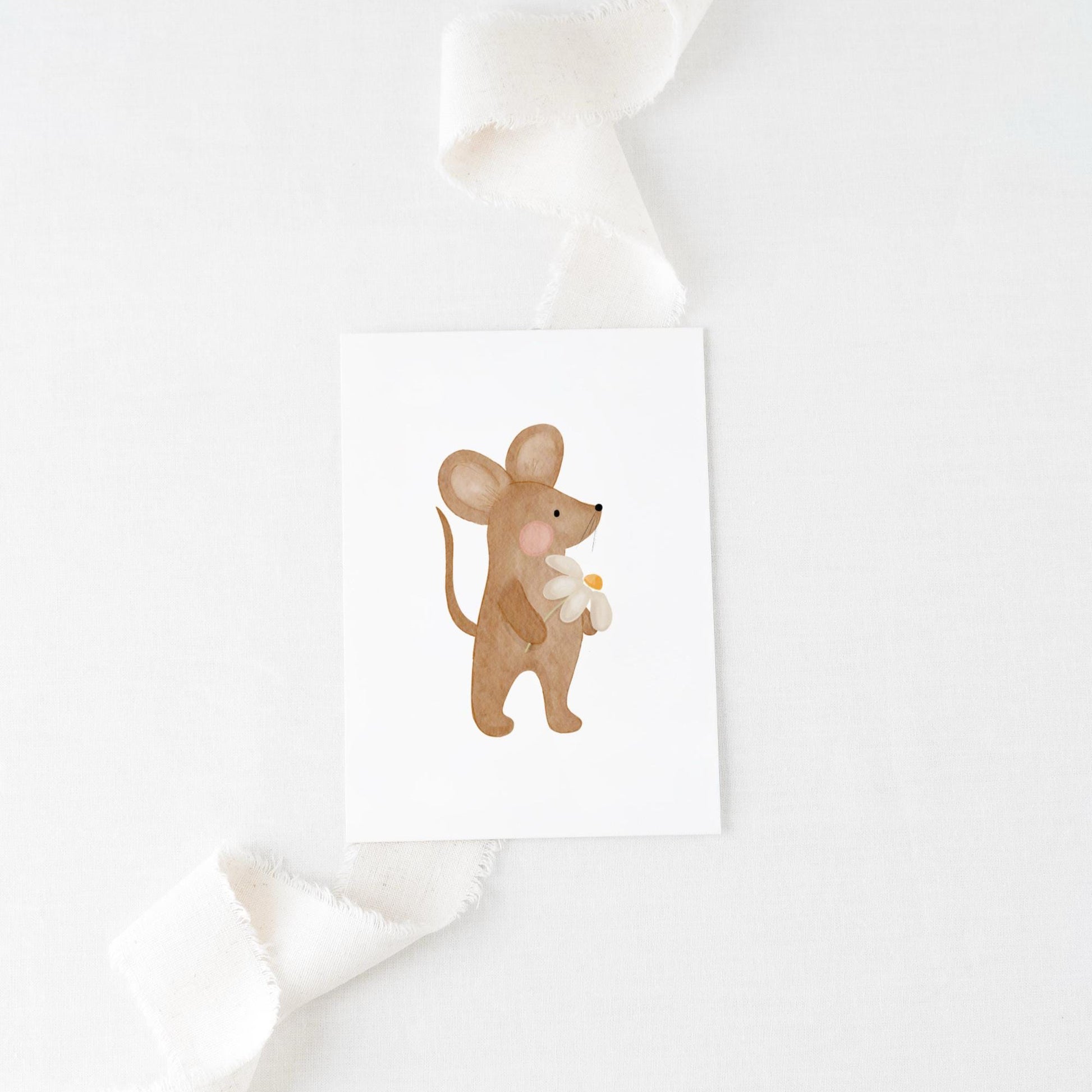 Liebevoll von mir gestaltete Postkarte in A6 mit einer Maus mit Gänseblümchen.