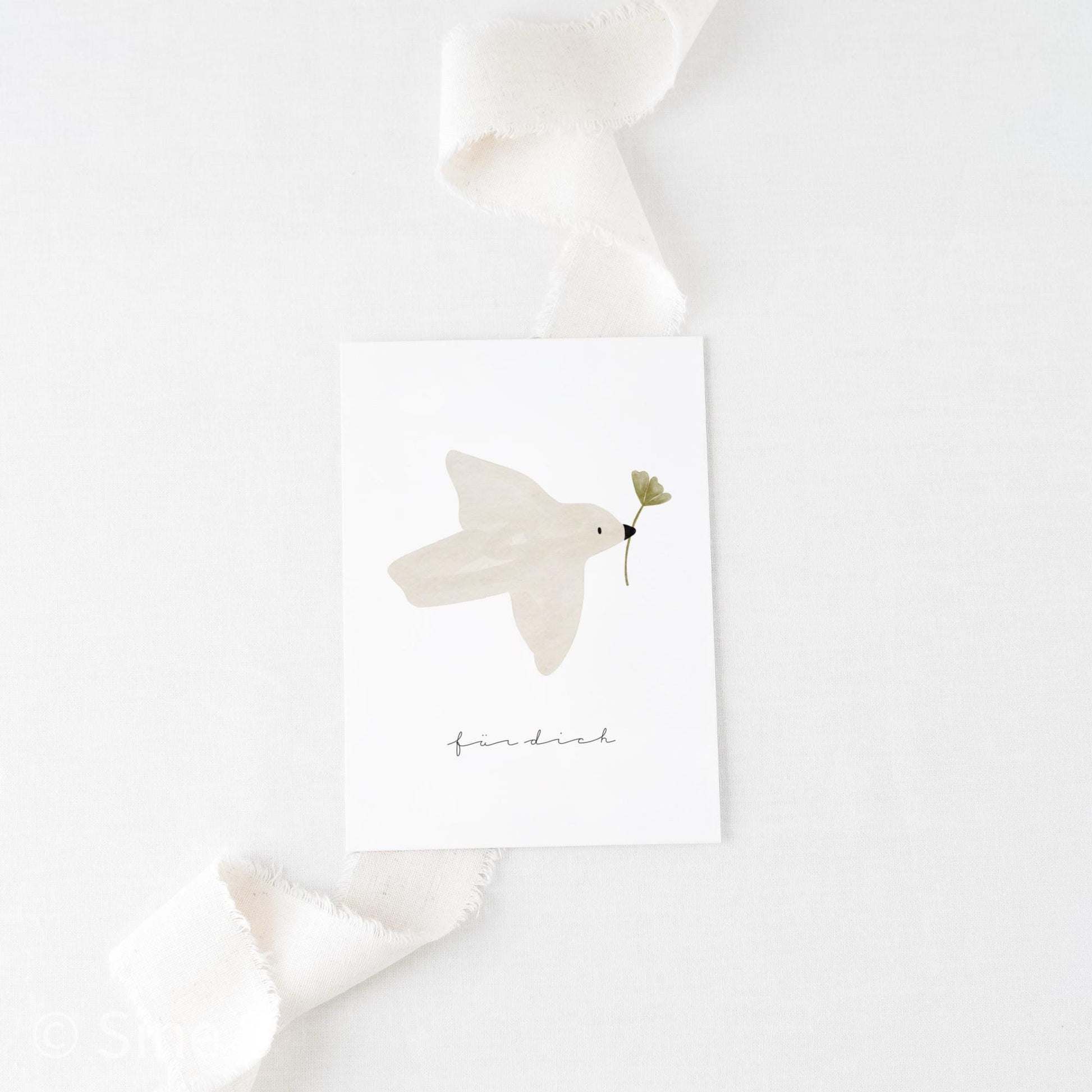Postkarte „Taube mit Zweig“ – Aquarell mit Spruch „für dich“ | A6