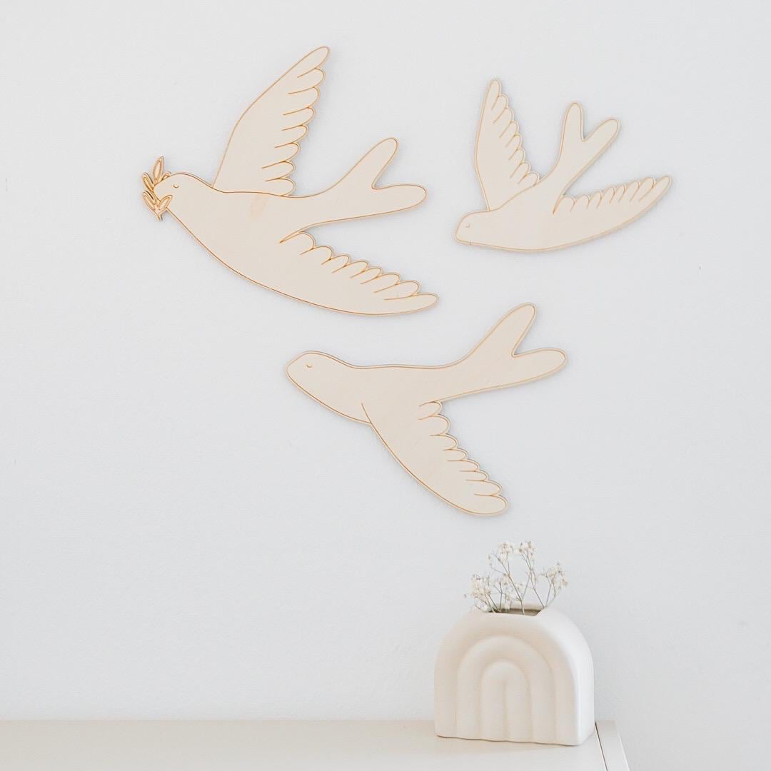 Wunderschöne Tauben aus Holz als Wanddekoration in dein Zimmer oder der deiner liebsten.